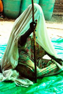 La femme. Peau noire, lisse, intense, presque dorée sous la lumière des braises. Drapée d’un voile blanc, elle tournait la tête lentement, assise d’abord, puis debout. Élancée. Gracieuse. Majestueuse. Je croyais voir une danse, une chorégraphie sacrée. Ses bras s’ouvraient, sa tête se balançait, son corps vibrait. Fascinée, mes petits doigts serrés sur le rebord de la fenêtre, je ne voulais rien perdre. Pas une seconde. Mais quelque chose a basculé. Doucement. Insidieusement.