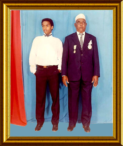 Hadj Djama Sed accompagné de son plus jeune fils après avoir été décoré de la Grande Etoile de Djibouti par Hassan Gouled Aptidon